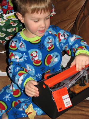 Ryder did a fairly decent job opening his gifts...Santa left him a piano,