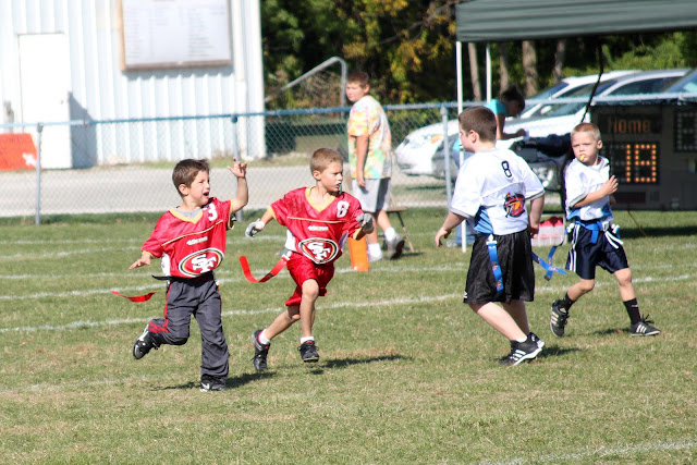 At the beginning of the season I found myself having major doubts about flag football. They keep score. There is a winner. There is a loser. Players are not given equal playing time. This is very unlike our experience with both T-Ball and Soccer at the beginning level. Thankfully, the kiddos do get a snack at the conclusion of each game. Face it...that is HUGE in youth sports!